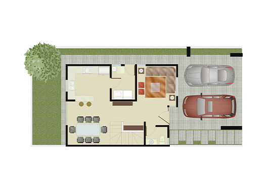 • Cochera techada para 2 automóviles.